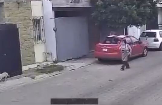El hecho que quedó grabado por cámaras de seguridad ocurrió en calle Pozo del Oro, de la colonia Pozo Bravo Sur, en Aguascalientes.